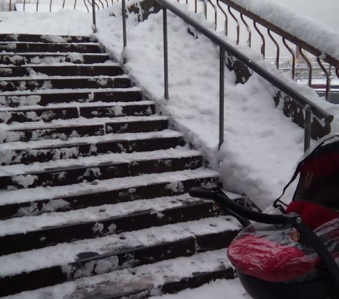 Savu neapmierinātību ar sētnieku darbu twitter paudusi GintaOS (@GintaOS), klāt pievienojot arī foto. Tajā redzams, ka sniegs no trepēm ir notīrīts, bet ko darīt māmiņām ar bērnu ratiņiem? Par to piemirsies.