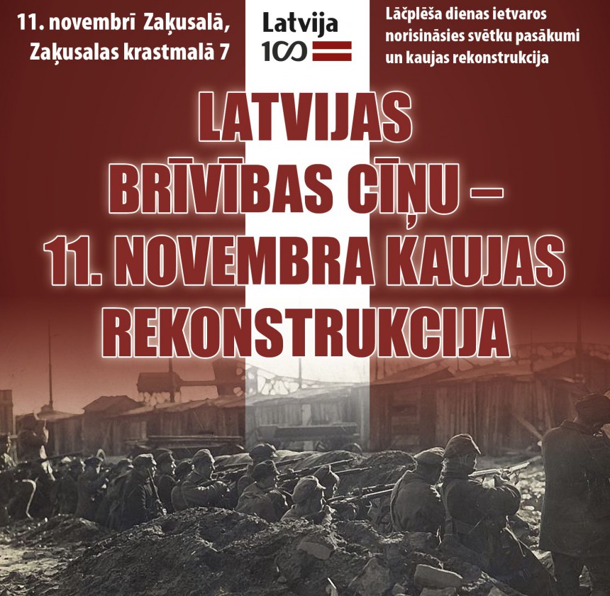 Lāčplēša dienā, 11. novembrī, Rīgā, Zaķusalā netālu no TV torņa, pieminot vēsturiskos Brīvības cīņas notikumus, norisināsies svētku pasākumi un kaujas rekonstrukcija, kuru organizē biedrība “Latviešu karavīrs”.