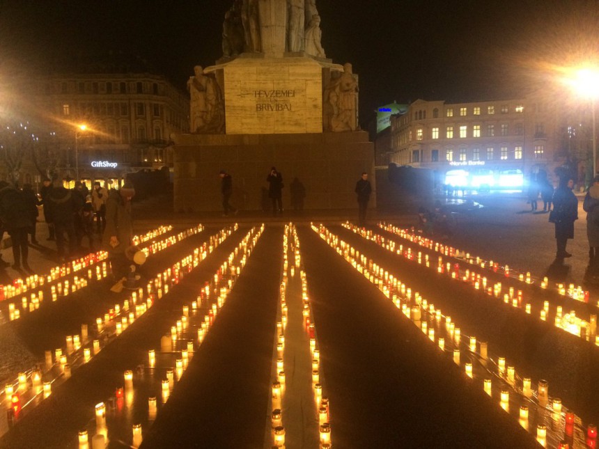 Iedzīvotāji un valsts viesi astoņās rindās no Brīvības pieminekļa virzienā uz Vecrīgu īpaši ierādītās vietās nolika svecītes un klusi godināja nogalināto ebreju piemiņu.