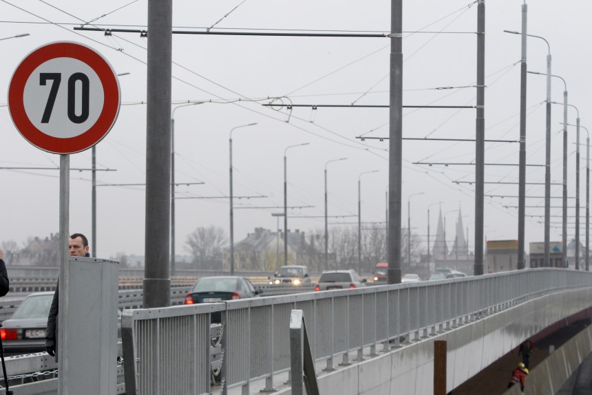 Patlaban ir slēgta trešā josla virzienā no centra uz Pārdaugavu, papildināja Rozīte.