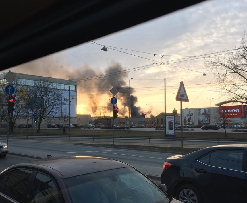 Sociālajā tīklā "Twitter" aculiecinieku ievietotajās fotogrāfijās redzams, ka ugunsgrēks izcēlies teritorijā aiz tirdzniecības centra "Elkor Plaza".