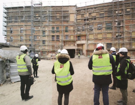 Katru dienu būvobjektā strādā 100 līdz 200 celtnieki un tas ir vairāk nekā nodrošināja iepriekšējais būvnieks SIA RBSSKALS Būvvadība, ar ko VNĪ pārtrauca līgumu. Pagājušā gada 11. augustā VNĪ apturēja būvdarbus objektā un sāka vienpusēju līguma laušanas procedūru. Oktobrī sarunas par šā būvobjekta turpināšanu bija nonākušas tādā strupceļā, ka VNĪ un toreizējais būvnieks nespēja vienoties par būvdarbu turpināšanu bijušajā Tabakas fabrikā. VNĪ ieskatā līgums ar RBSSKALS Būvvadību nav spēkā kopš 2016. gada 27.oktobra. Nelīdzēja arī mediatora jeb starpnieka - Būvniecības valsts kontroles biroja - iesaistīšana. VNĪ pamatoja, ka akciju sabiedrība nav guvusi apliecinājumu uzņēmēja spējai veikt darbus līgumā noteiktajā termiņā un apjomā, tāpēc VNĪ nesaskata iespēju sadarbības turpināšanai. Iepriekšējais būvnieks bija paveicis aptuveni 12 procentus no kopējās līguma summas 3,8 miljoniem eiro. VNĪ paredzējusi piedzīs būvnieka iemaksātās garantijas summas, kuru apjoms vēl tiek precizēts.