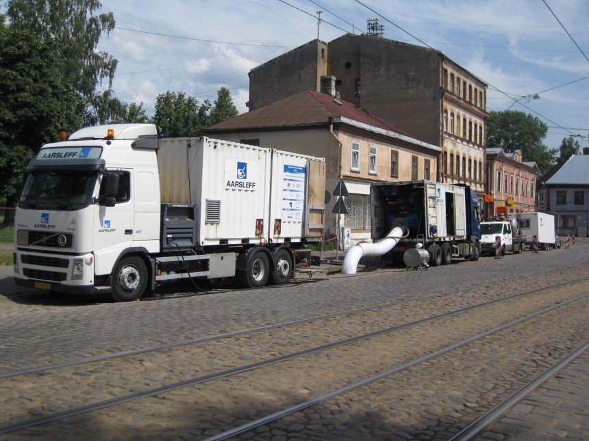 SIA Rīgas ūdens projekta vadītājs Jānis Zirnītis stāsta, ka liela diametra kanalizācijas vados jālieto atšķirīga tehnoloģija, jo izmantotie materiāli sacietē ilgākā laikā un nepieciešamo temperatūru vieglāk uzturēt ar ūdeni. Arī ar šo metodi var uzreiz atjaunot kanalizācijas vadus vairāku simtu metru garumā, un iedzīvotājiem tas nerada ilgstošas neērtības - kaut arī darbi notiek visu diennakti, tos organizē pa posmiem. Darbu veicēju transports aizņem vienu braukšanas joslu, tāpēc uz darbu veikšanas laiku - vienu, divām diennaktīm - tā transporta kustībai ir slēgta, bet satiksme netiek pilnībā pārtraukta. Iedzīvotājiem tiek nodrošināts nepārtraukts kanalizācijas pakalpojums.