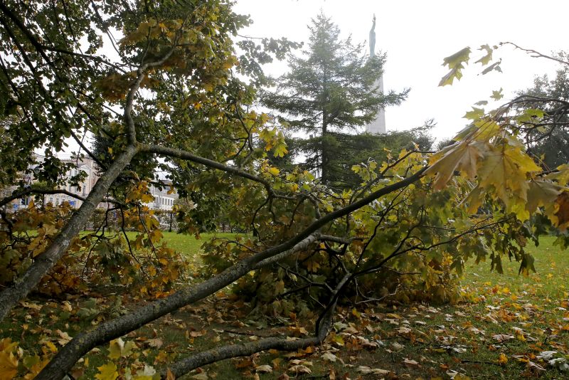 Koks nogāzies skvērā pie Nacionālās operas un baleta ēkas. Ugunsdzēsēji par šo gadījumu pagaidām nebija informēti, taču, iespējams, seku likvidācijā iesaistījušies pašvaldības dienesti.