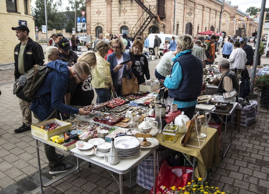 Tirdzniecības galdu funkcijas pilda gan krēsli, gan čemodāni, gan vienkārši zālē izklātas segas, atzīmēja pasākuma rīkotāji.