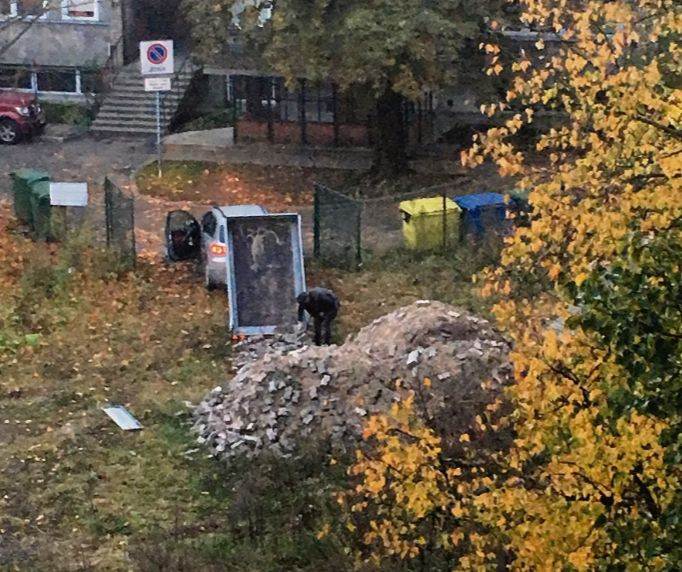 KURŠ TAS IR? Svētdien un pirmdien Pokrova kapos tika izgāztas vairākas bruģakmeņu kravas. Šoferis rīkojās ātri, iedzīvotāji nepaguva fiksēt automašīnas numuru. Bet vides institūcijās taujā pēc auto numura, lai varētu noskaidrot iespējamo pārkāpēju. Pagaidām tā ir neiespējamā misija – pateikt, kurš apsēdis Pokrova kapu © Aculiecinieka foto