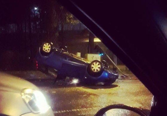 Avarējot, mašīna apgāzusies uz jumta. Negadījums noticis Meža prospektā.