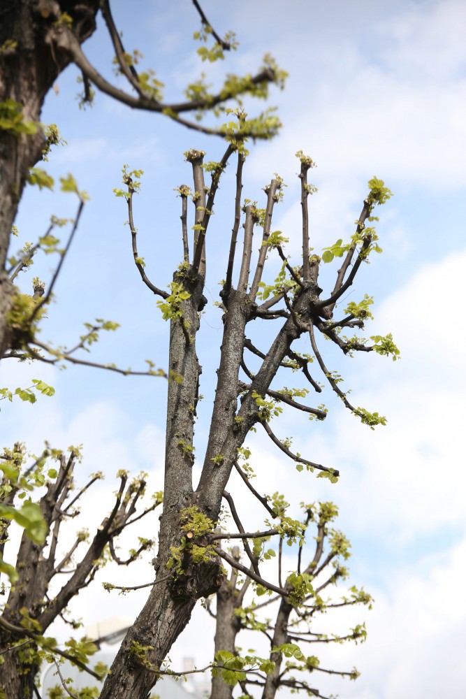 Ap laukumu tiek veikta koku vainagu cirpšana ar polardēšanas metodi - mākslīgu, bet kokam veselīgu vainaga veidošanas paņēmienu ar regulāru zaru apgriešanu vienā un tajā pašā vietā. Liepām veidojas bumbai līdzīgi zara paresninājumi, kas arī bezlapu periodā izskatās dekoratīvi. Griešanas laikā tiek ievērota liela rūpība un precizitāte. Darbi turpināsies nedēļu. Pagājušajā nedēļā ar līdzīgu paņēmienu veidoti liepu vainagi Ziedoņdārza parkā.