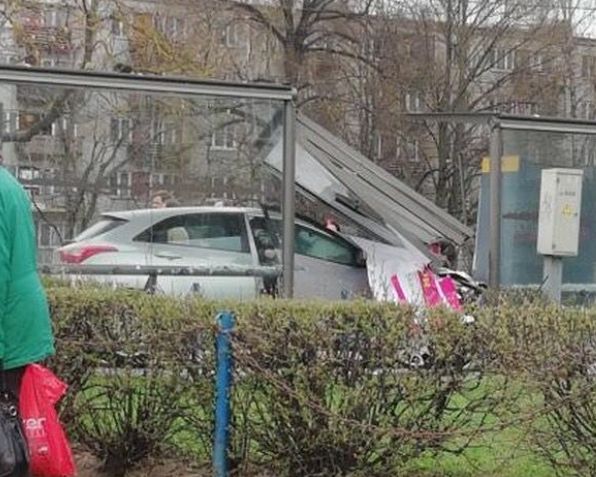 Bildē redzams, ka kāds auto ietriecies sabiedriskā transporta pieturā Ķengaragā. Nav informācijas, vai ir kāds cietušais.