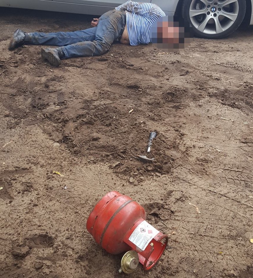 Vīrietis leņķzāģi pacēla un to ielika netālu novietotajā automašīnā. Tomēr, kā vēlāk atklājās, kungs negrasījās samierināties ar notiekošo un no automašīnas pēkšņi izņēma āmuru un propāna gāzes balonu. Vīrietis ar paņemtajiem priekšmetiem mēģināja uzbrukt policistiem. Viens no likumsargiem izvilka elektrošoka pistoli un izšāva zondes. Tās iedūrās uzbrucēja krūšu rajonā.