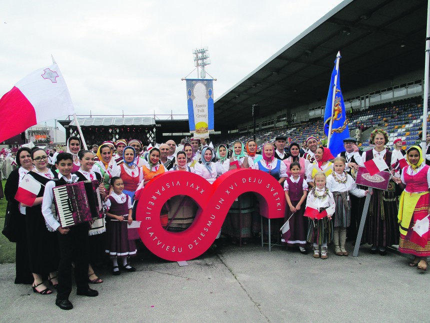 Starp tūkstošiem dejotāju un dziedātāju no Latvijas kā savējie jutās arī folkloras grupa Aurora no Maltas.