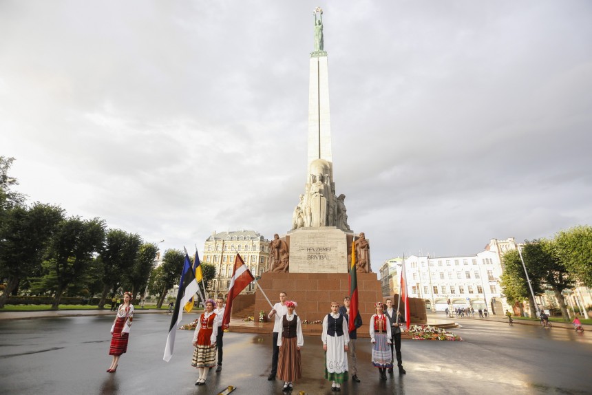 Baltijas ceļa atcerei veltīts pasākums pie Brīvības pieminekļa ceturtdienas vakarā pulcējis vairāk nekā 300 iedzīvotāju.