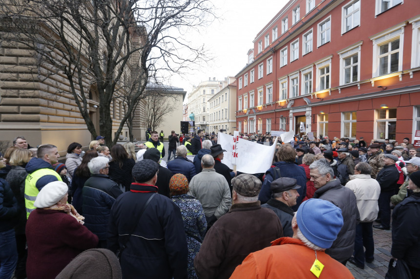 Otrdienas rītā aptuveni 30 cilvēki pie Saeimas piketē pret jauno Dzīvojamo telpu īres likumprojektu