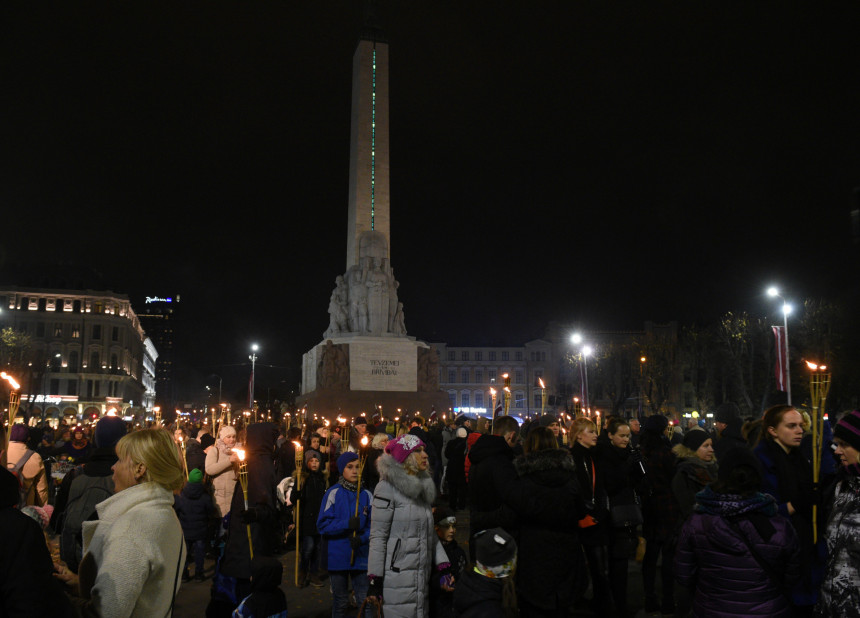 Apvienības "Visu Latvijai!"-"Tēvzemei un brīvībai"/LNNK (VL-TB/LNNK) rīkotā Latvijas simtgades lāpu gājiena kolonna šovakar stiepās vairāk nekā kilometra garumā.