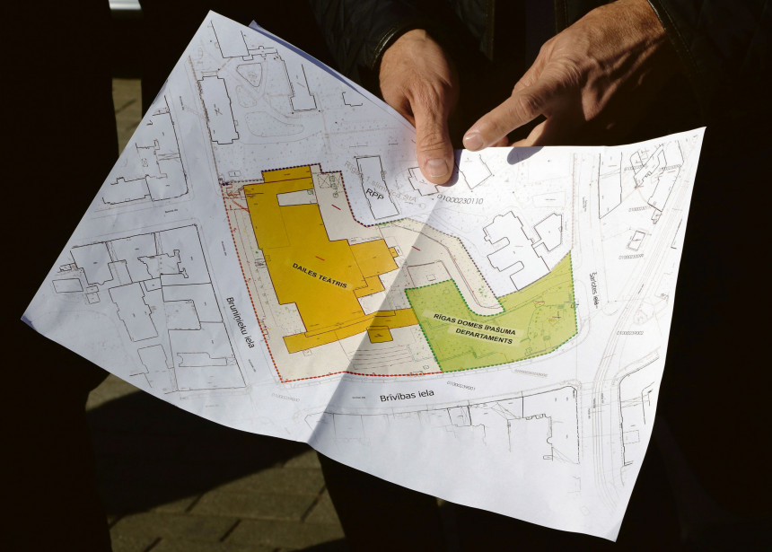 RĪKOSIES KOPĀ. Teritorija pie Dailes teātra daļēji ir gan valsts, gan pašvaldības īpašums - teātra skvēra daļa Bruņinieku ielas pusē un Brīvības ielas pusē līdz teātra kasēm ir VNĪ pārvaldībā, atlikusī daļa Brīvības ielas pusē no kasēm līdz Matīsa ielai - Rīgas pašvaldības īpašumā