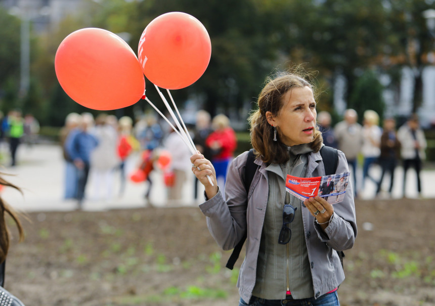 Kā novēroja aģentūra LETA, vairāki no plakātiem iepriekš bija sagatavoti un tika izdalīti pasākuma dalībniekiem.
