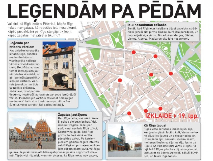 Rīdzinieki un pilsētas viesi varēs uzzināt, kā Rīgā ienācis Pēteris I, kāpēc Rīga nekad nav gatava, kā radušies ielu nosaukumi, kāpēc piebaldzēni pa Rīgu staigāja tik lepni, kāpēc žagatas met pilsētai līkumu, kā arī daudzus citus faktus, nostāstus un ticējumus.