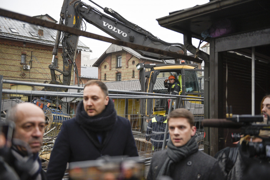 Demontāžas darbus sāka veikt ap plkst.9, lai gan līdz plkst.7 tas netika darīts, bet minētais laukums bija norobežots ar metāla žogu.