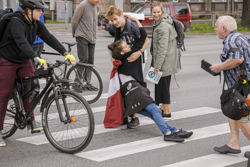 Protestējot pret koku zāģēšanu, "Marsa velotreka" koku aizstāvji pirmdienas rītā traucēja satiksmi Brīvības gatvē. Notikuma vietā ieradās aptuveni 20 aktīvisti, kuri pa gājēju pāreju kājām un ar velosipēdiem lēnām šķērsoja Brīvības gatvi. Daži aktīvisti kliboja vai pat rāpoja, aizkavējoties pie sarkanās gaismas. Tādējādi tika traucēta satiksme.