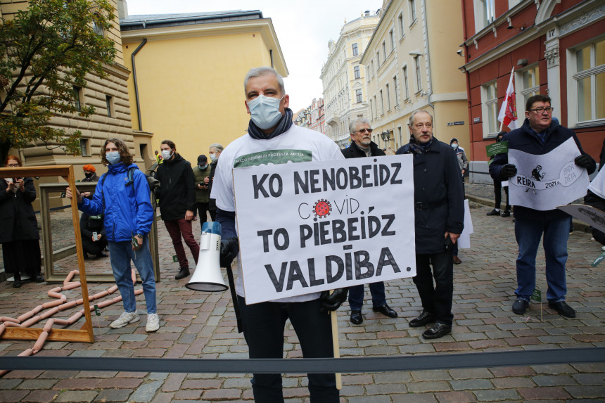 Piketētāji skandēja saukļus: "Ko nenobeidz Covid, to nobeidz valdība", "Ļaujiet mums strādāt!", "Atdod karoti!", "Ļaujiet mazajam biznesam strādāt!".