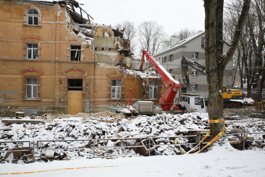 Leiškalns stāstīja, ka, pabeidzot visus darbus, apkārt ēkai uzliks pagaidu žogu.