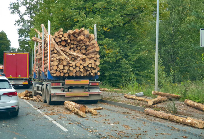 Ap plkst.15 notika satiksmes autobusa un baļķvedēja sadursme, kuras rezultātā no smagās automašīnas izbirusi krava.