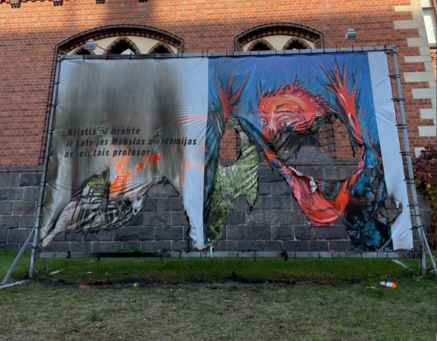 LMA prorektore Antra Priede informējusi, ka plakāts, kas pie akadēmijas tika uzstādīts tikai ceturtdien, visticamāk, sadedzināts naktī uz svētdienu, 3.oktobri. Akadēmija vērsusies policijā, taču pagaidām neesot aizdomās turamo.