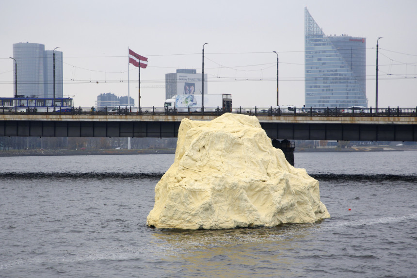 Sociālajā pretkorupcijas kampaņā Daugavā izvietotais vides objekts - aisbergs - saskarsmē ar vidi mainījis krāsu, tāpēc tas aizvadītajā naktī demontēts un atbildīgais uzņēmums par saviem līdzekļiem nepilnību novērš.
