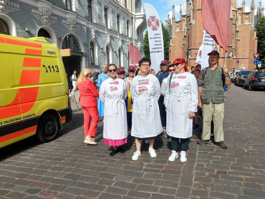Ārsti, māsas, māsu un ārstu palīgi, sanitāri un citi medicīnas nozares darbinieki šodien piedalās mediķu arodbiedrības streikā. Pie Veselības ministrijas mediķi pulcējas protesta akcijai.