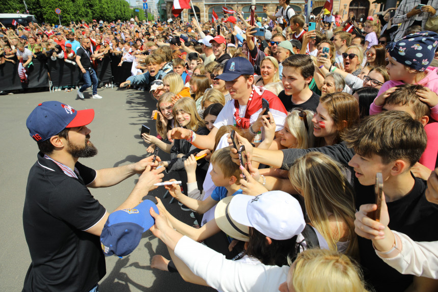 Jau ziņots, ka desmitiem tūkstoši cilvēku pie Brīvības pieminekļa Rīgā ar skaļām ovācijām sagaidīja Latvijas hokeja izlasi, kas aizvadītajā pasaules čempionātā izcīnīja bronzas medaļas.