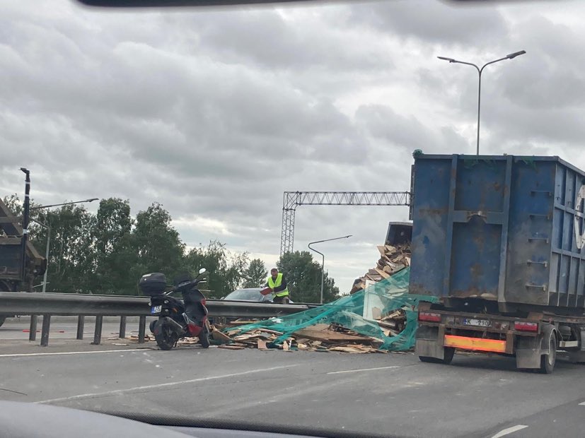 Pēc plkst 17:30 uz Dienvidu tilta notikusi smaga avārija. Konteineru vedējs ar būvniecības atlikumiem, taranējot aizsargbarjeru, iebraucis pretējā braukšanas joslā un apgāzies.
