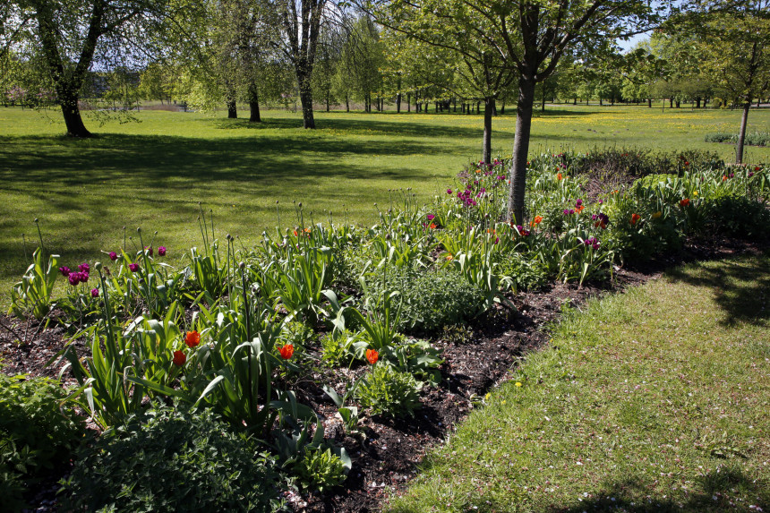 - Vasaras puķu dobe Ziedoņdārzā, pie strūklakas.