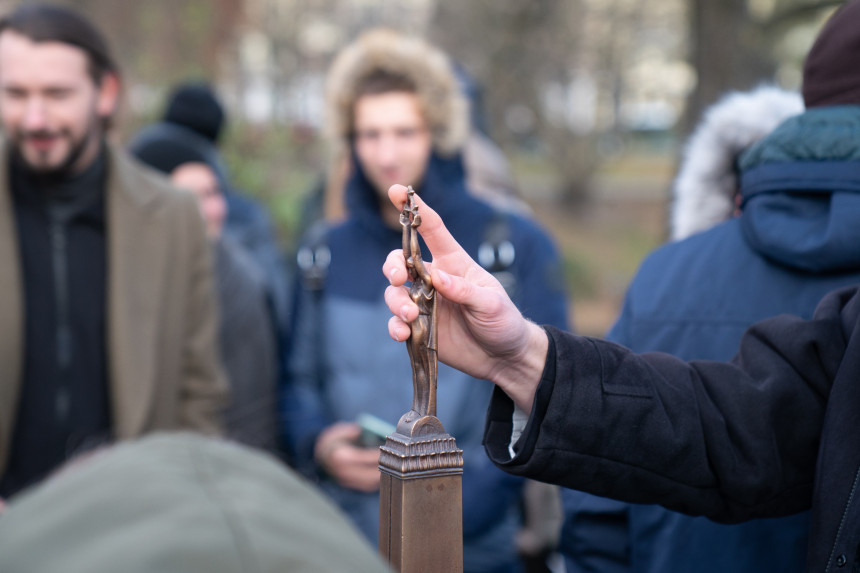 Video: Pārkāpējs sekunžu laikā nolauž taktilā Brīvības pieminekļa obelisku, bet pēc brīža kāda persona viņam atņem nolauzto pieminekļa detaļu un noliek to vietā.