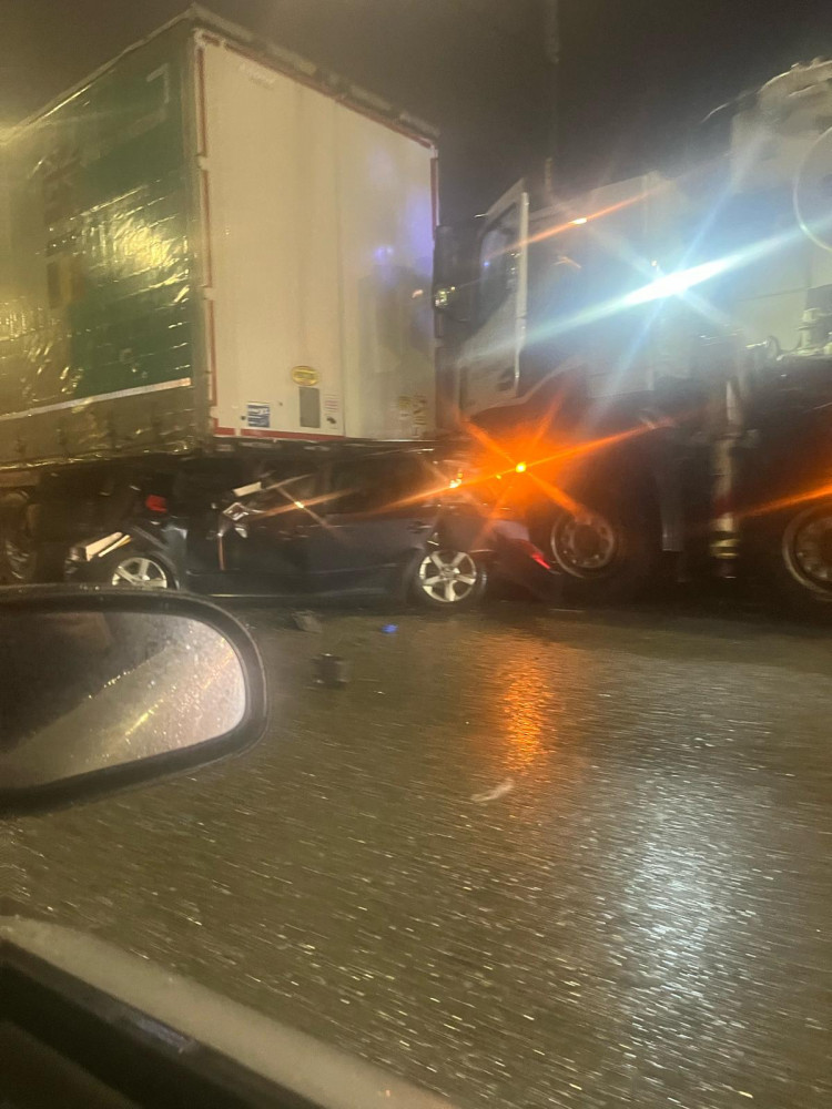 Aculiecinieks stāsta, ka vieglā automašīna ir smagi cietusi un vairāk atgādina saburzītu virsbūvi nekā automašīnu. Vieglais auto ir "pagrūsts" zem smagā transporta līdzekļa. Avārijā iesaistītas arī citas automašīnas.