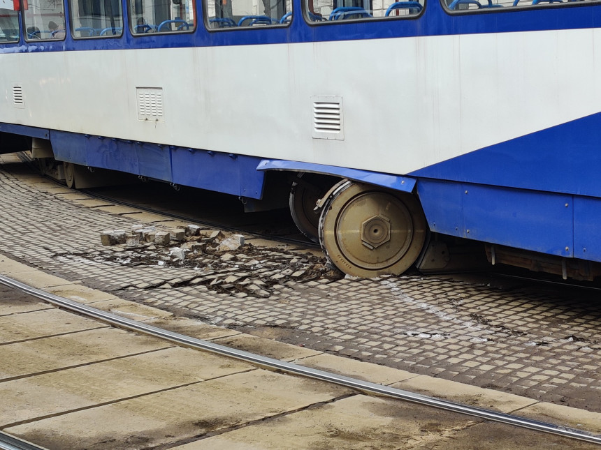 Kā liecina sociālajos tīklos pieejamā informācija, pie Nacionālā teātra no sliedēm nobraucis tramvajs.