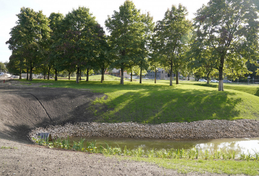 Tāpat segumu atjauno Uzvaras parka daļā starp Slokas ielu, Aleksandra Grīna bulvāri, Raņķa dambi un Mārupīti. Projektā paredzēta arī zāliena atjaunošana gandrīz 3000 kvadrātmetru platībā.