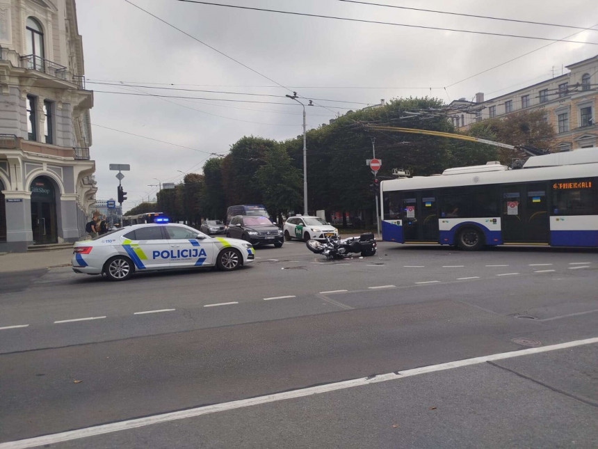 Avārijā iesaistīts trolejbuss un motocikls “Honda”.