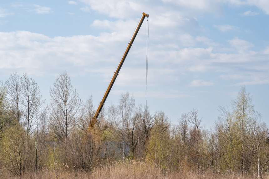 Torņa celtņa strēles bez kravas un bez kravas satveršanas ierīces atrašanās virs publiskām teritorijām nerada bīstamību un nav pārkāpums.