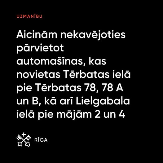 Būvdarbu dēļ radies iesēdums Tērbatas ielas posmā starp Artilērijas ielu un Lielgabalu ielu, kā arī Lielgabalu ielas posmā uz Krišjāņa Barona ielas pusi. Šajos ielas posmos tiek slēgta satiksme, un iedzīvotāji tiek aicināti pārvietot šajos posmos novietotās automašīnas, lai neradītu papildu slodzi ielai.