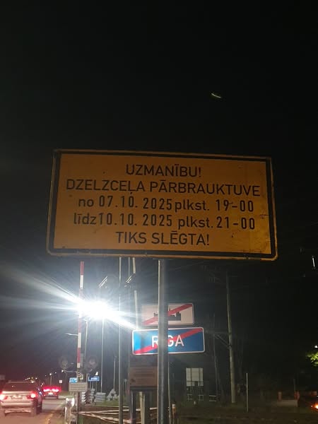 Kustība būs slēgta no otrdienas, 7. oktobra, plkst. 19 līdz piektdienai, 10. oktobrim, plkst. 21.