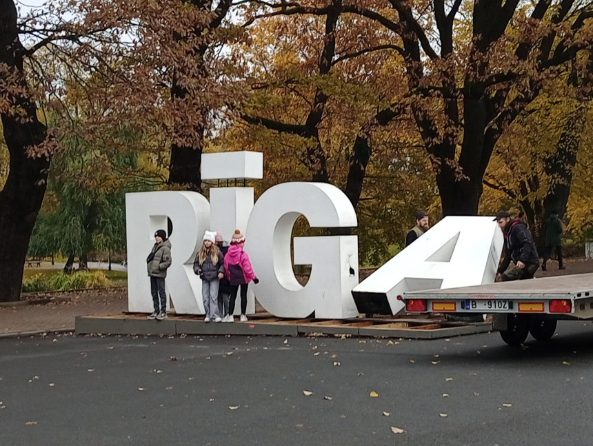 Rīgas centrā starp Laimas pulksteni un Brīvības pieminekli demontēts uzraksts RĪGA, kas visu gadu priecēja cilvēkus — garāmgājēji līdz pat pēdējai minūtei izmantoja iespēja fotografēties pie četriem lielformāta burtiem.