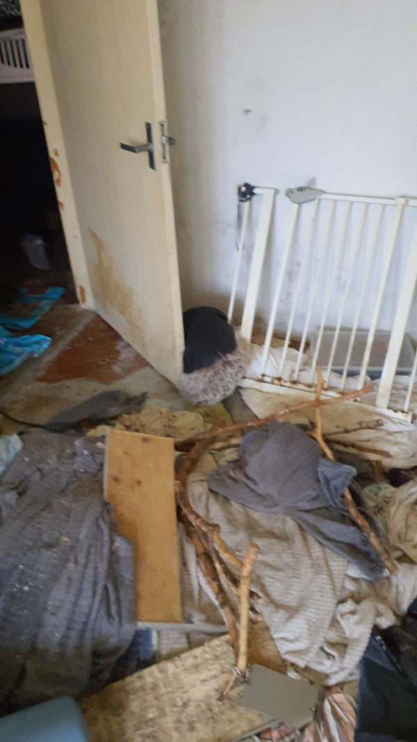 Visas dzīvokļa telpu grīdas bija klātas ar dzīvnieku izkārnījumiem, telpu stūros izkārnījumu kārta sasniedza pat desmit līdz piecpadsmit centimetrus, kas liecināja par ilgstošiem dzīvnieku labturības prasību pārkāpumiem.