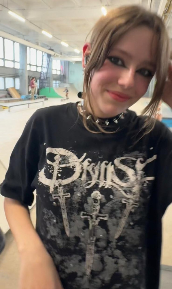 Pazīmes: augums 160 cm, gari, brūnas krāsas mati salikti copē. Bija ģērbusies melnas krāsas platās džinsa auduma biksēs, melnas krāsas virsjakā, baltas krāsas sporta apavos. Līdzi bija melnas krāsas mugursoma ar uzrakstu “Vans”.