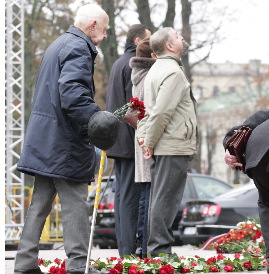 Ziedu nolikšanas ceremoniju skatījās pārsvarā vecāka gadagājuma cilvēki, bet uz pasākumu bija ieradušās arī ģimenes ar bērniem un jaunieši.