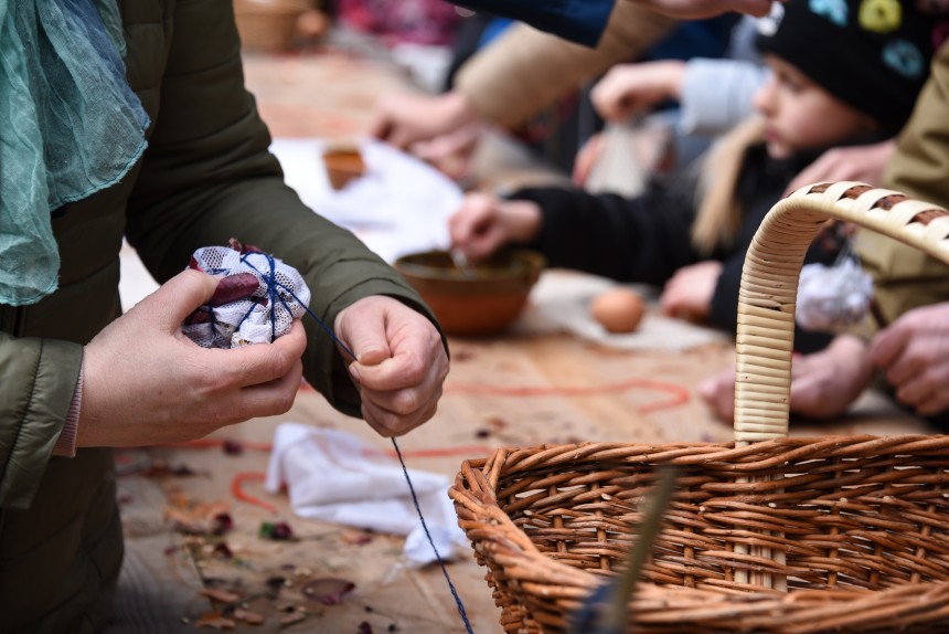 Galvenā darbošanās notiks olu krāsošanas darbnīcā, kas iepriekšējos gados guvusi ļoti lielu atsaucību. Piedāvāsim olu ietīt dabīgajos materiālos - grūbās, rīsos, karkades lapās, melleņu ievārījumā, sausos ziedos un krūmu lapās. Pēc tam ola nonāks lielajā sīpolu mizu katlā un pēc aptuveni 20 minūtēm ola būs ieguvusi savu individuālo krāsu un rakstus. Ola noderēs, lai piedalītos citās svētku aktivitātēs, piemēram, olu ripināšanas sacensībā.