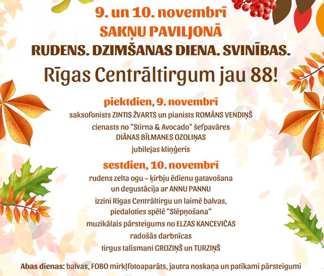 Rīgas Centrāltirgus 88. dzimšanas dienai par godu tirgus apmeklētājiem un viesiem 9. un 10. novembrī tiks sarūpēta raiba svētku programma.