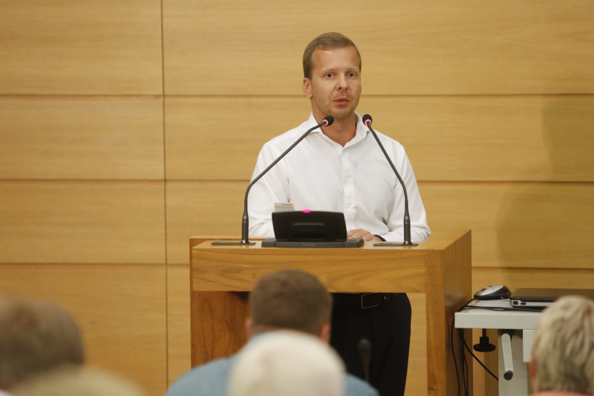 Pēc balsojuma rezultātu paziņošanas Rīgas vicemērs Oļegs Burovs (GKR) izsludināja sēdes pārtraukumu un sasauca visus frakciju vadītājus uz tikšanos.