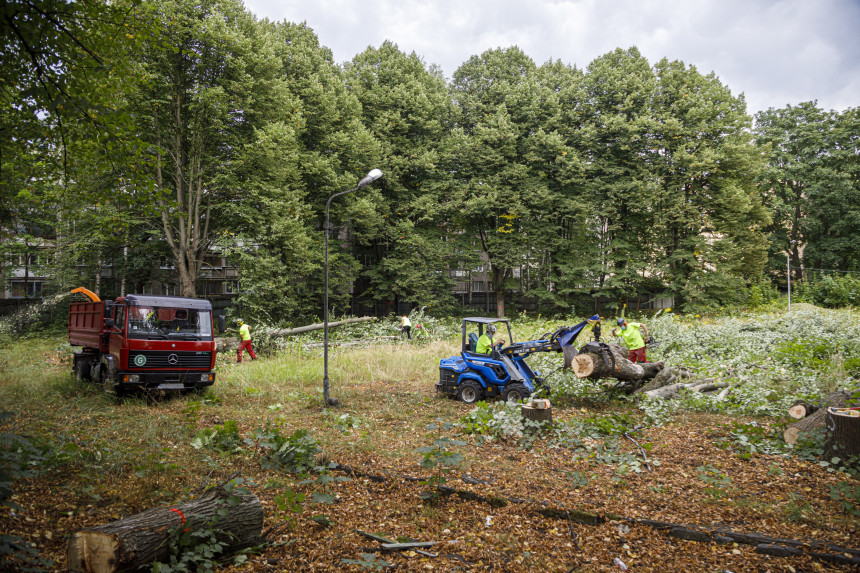 Kā ziņots, bijušajā "Marsa velotreka" teritorijā šodien ieradās strādnieki un sāka zāģēt kokus. Koki tika zāģēti raitā tempā, savukārt krūmi - uzreiz tika šķeldoti.