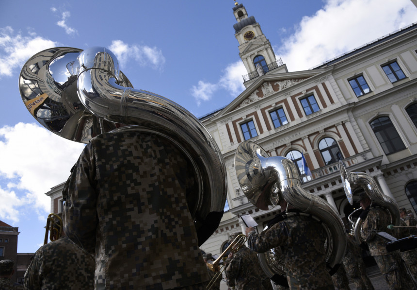 Šodien jaunās Rīgas domes koalīcijas sarunas uzmundrināja Nacionālā bruņoto spēku (NBS) orķestra uzstāšanās Rātslaukumā.