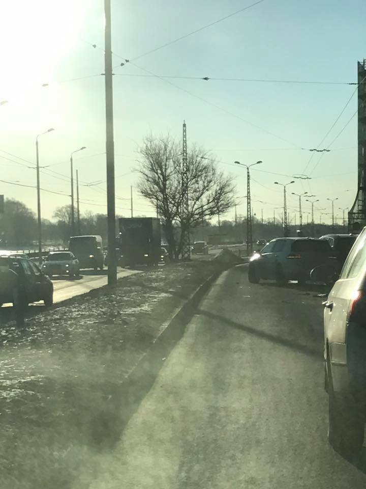 Autovadītāji norāda, ka autoavārija dēļ satiksme ir ierobežota. Sastrēgums izveidojies abos ielas virzienos.